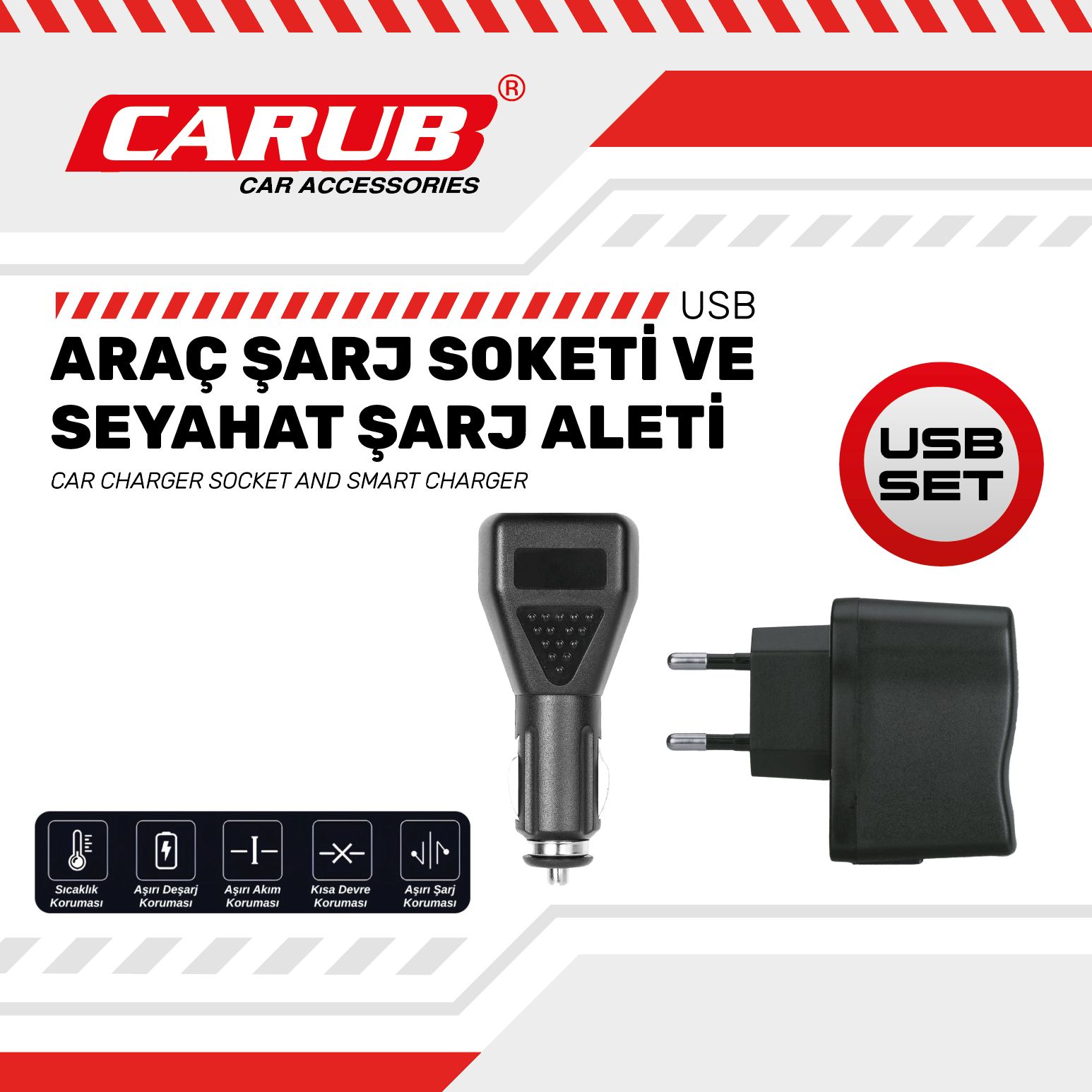CARUB Araç Şarj Soketi ve Seyahat Şarj Aleti Set